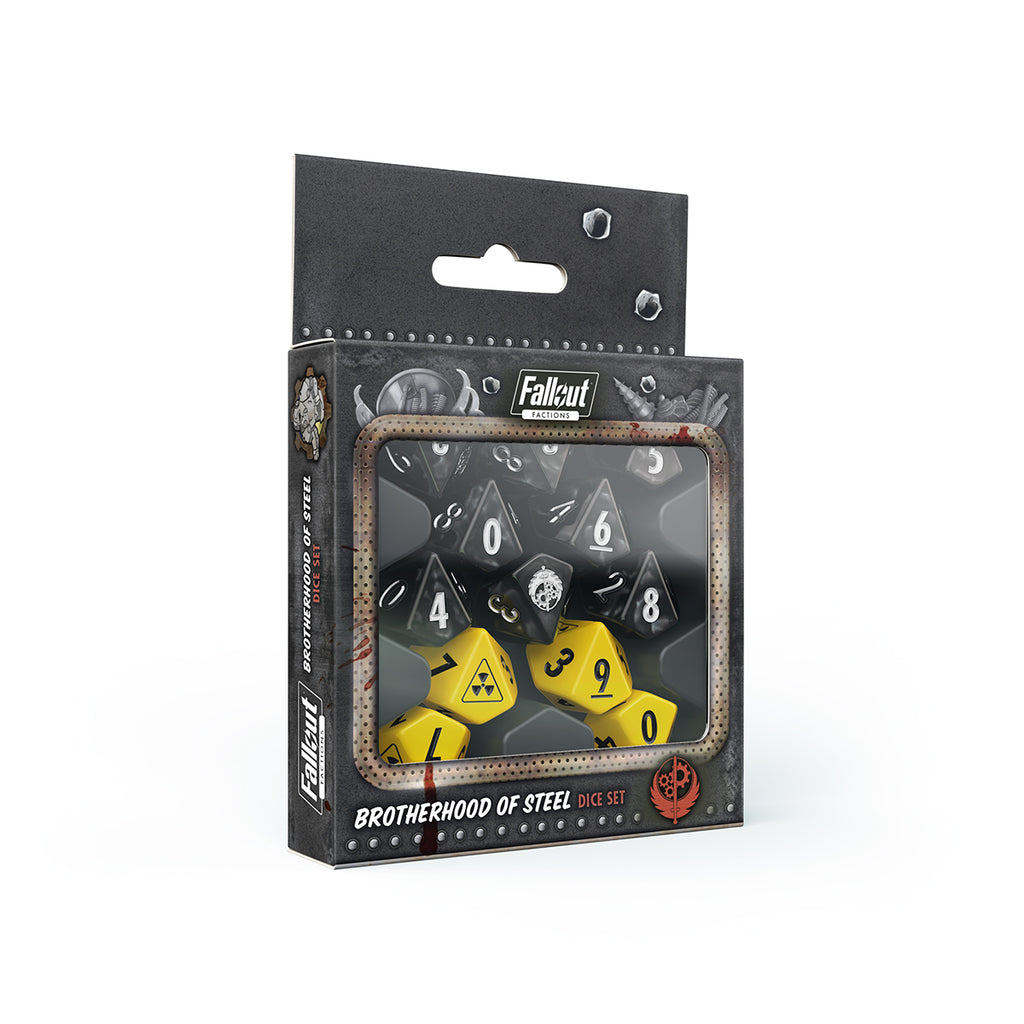 • Four official Fallout: Factions Dice Sets - one for each faction: the Brotherhood of Steel, the Institute, the Minutemen, and the Railroad.